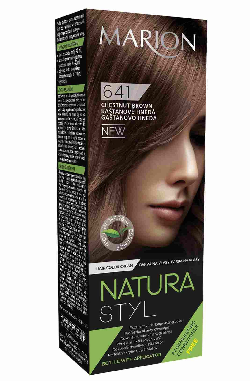 - Farba do włosów Marion Natura Styl 641 Kasztanowy Brąz to doskonały wybór dla osób poszukujących trwałego i naturalnego koloru. Dzięki zawartości protein jedwabiu i keratyny, farba skutecznie pokrywa siwe włosy, ale także odżywia.